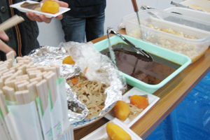 おもち以外にも恒例のトン汁や地元商店街の神谷青果さん特製の野菜の煮物も美味しく頂きました。