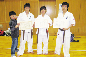 年に一度の昇級・昇段審査会に江戸川支部より3名の中学生が茶帯を受審に参加