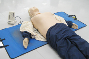 午前中は救急救命センターのドクターによるスライドを使った講義があり、その後、個人用のダミー人形を使って