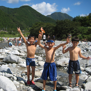 回復し行われ、三日目は快晴に恵まれたので、川遊びを十分に楽しめたようです。